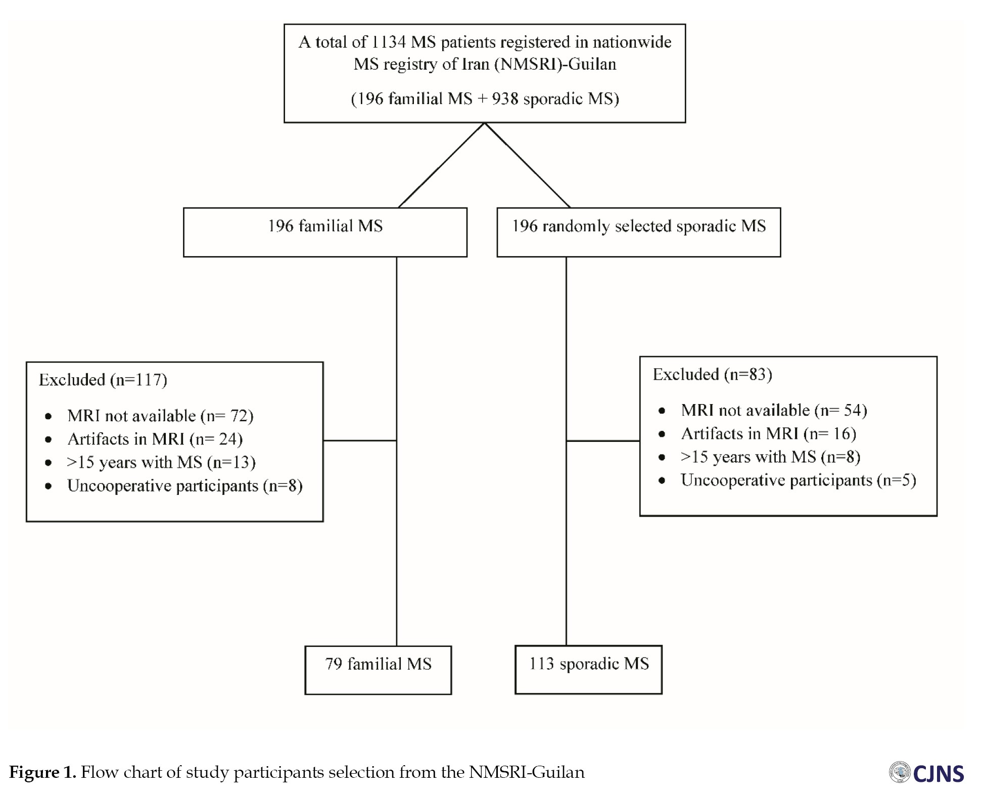 19]. Expanding our knowledge about the unique characteristics of the familial form of MS enlightens the significance of genetic and environmental factors in this disease and improves the diagnostic and therapeutic methods. This study was designed to compare familial and SMS cases to comprehensively understand their variations and implications.
