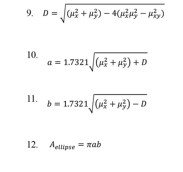 By using central tendency measurement, we can measure variability in this chart and, by reducing the sampling distance, appropriately scale the rates and get closer to continuous data results [22]. The SODP related to IMFs shows the EEG signals of elliptical shapes [21]. To determine the confidence region of SODP from IMFs, we use the following relationships: