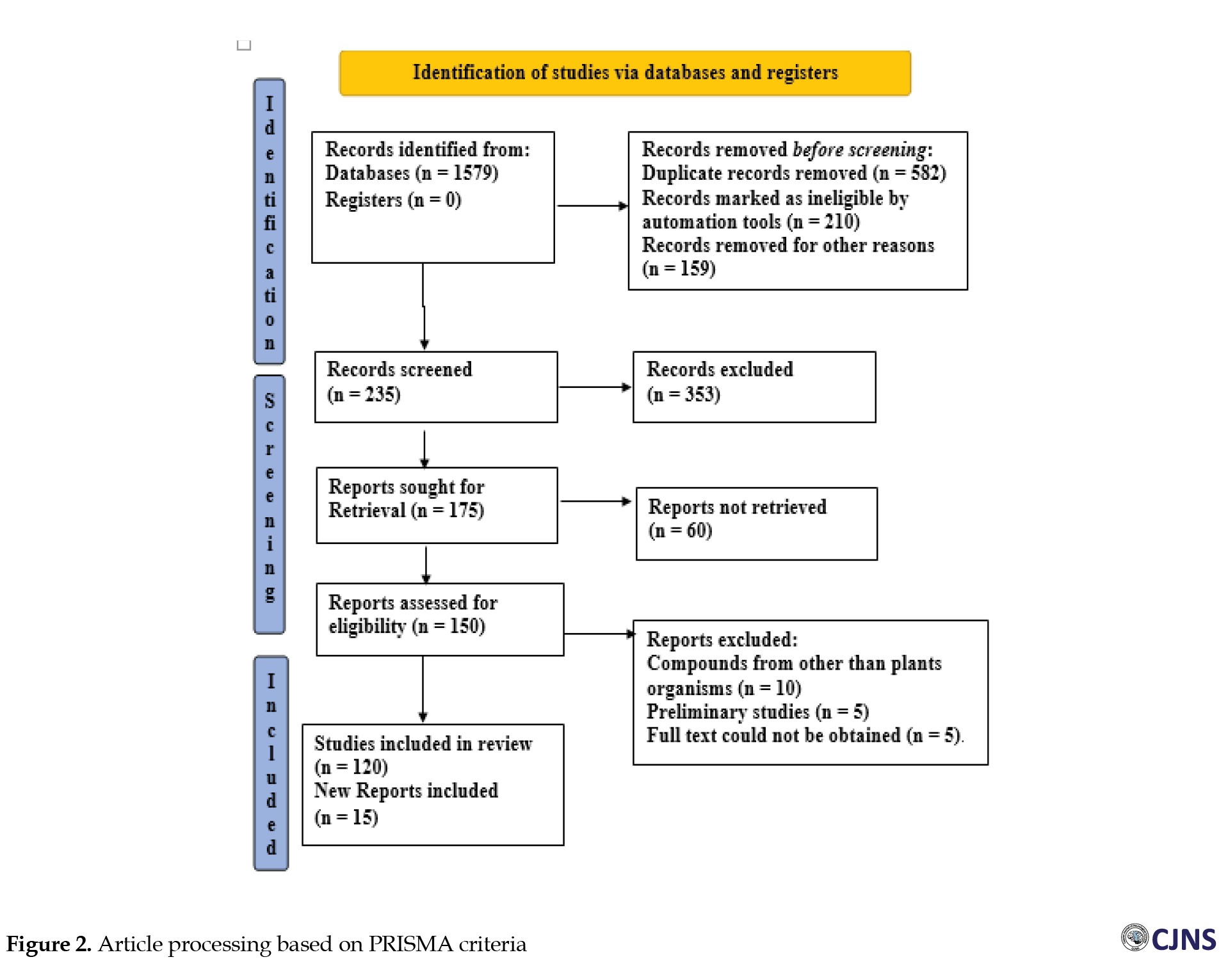 The review encompassed peer-reviewed papers and randomized controlled trials (RCTs) investigating plant bioactive substances with antiepileptic effects. The research examined plant-derived bioactive substances exhibiting significant antiepileptic or neuroprotective properties, utilizing experimental models of epilepsy, clinical trials on humans, or cultures of cells pertinent to epilepsy investigations. Qualified research evaluated seizure reduction, neuroprotective benefits, control of oxidative stress, neurotransmitter equilibrium, ion channel regulation, or other pathways linked to antiepileptic efficacy. Only full-text, peer-reviewed journal publications published in English over the past 10 years were included. The exclusion criteria were applied to research that examined synthetic medicines or non-bioactive extracts of plants lacking documented antiepileptic properties [17]. Studies that failed to evaluate antiepileptic efficacy or relevant mechanisms were also omitted. Narrative reviews, editorials, letters to the editor, and non-systematic reviews were excluded. Furthermore, publications in languages other than English were eliminated unless a high-quality translation was provided. Unpublished works, such as preprints, conference abstracts, and dissertations without peer review, were excluded from consideration. Additionally, this review excluded studies that analyzed mixed plant extracts without separating and assessing individual bioactive components.